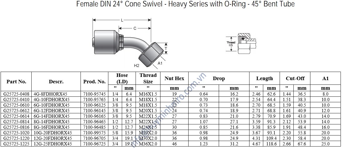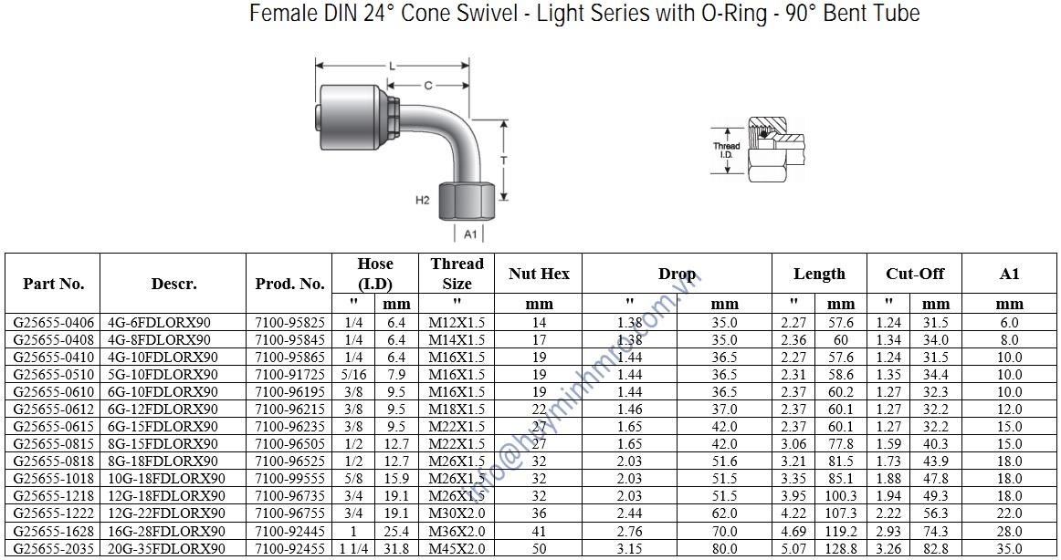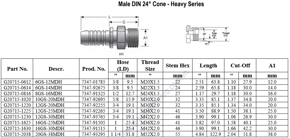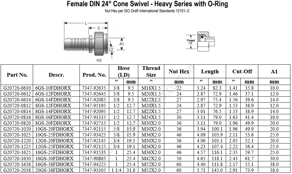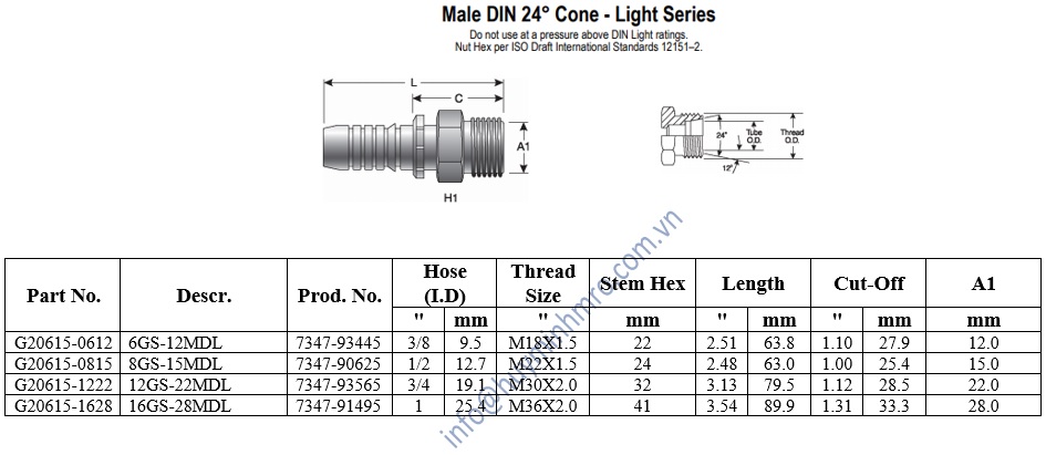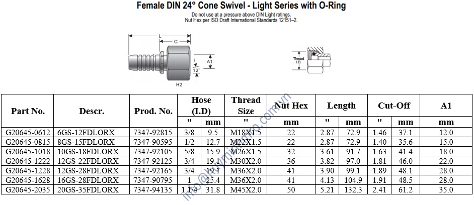 Khớp nối ống Gates DIN 24o có ren thẳng, ren đực DIN 24o phù hợp với cả ren cái DIN 24o và 60o. Có 2 loại Khớp nối ống DIN 24o : loại nặng và loại nhẹ. Được phân biệt rõ ràng thông qua đường kính ren của khớp nối ( loại nặng có đường kính ống ra nhỏ hơn so với loại nhẹ).