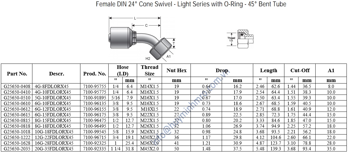 Khớp nối ống Gates DIN 24o được sử dụng trong môi trường thủy lực với áp suất từ thấp đến cao. Là khớp nối theo hệ mét phổ biến theo tiêu chuẩn Đức.