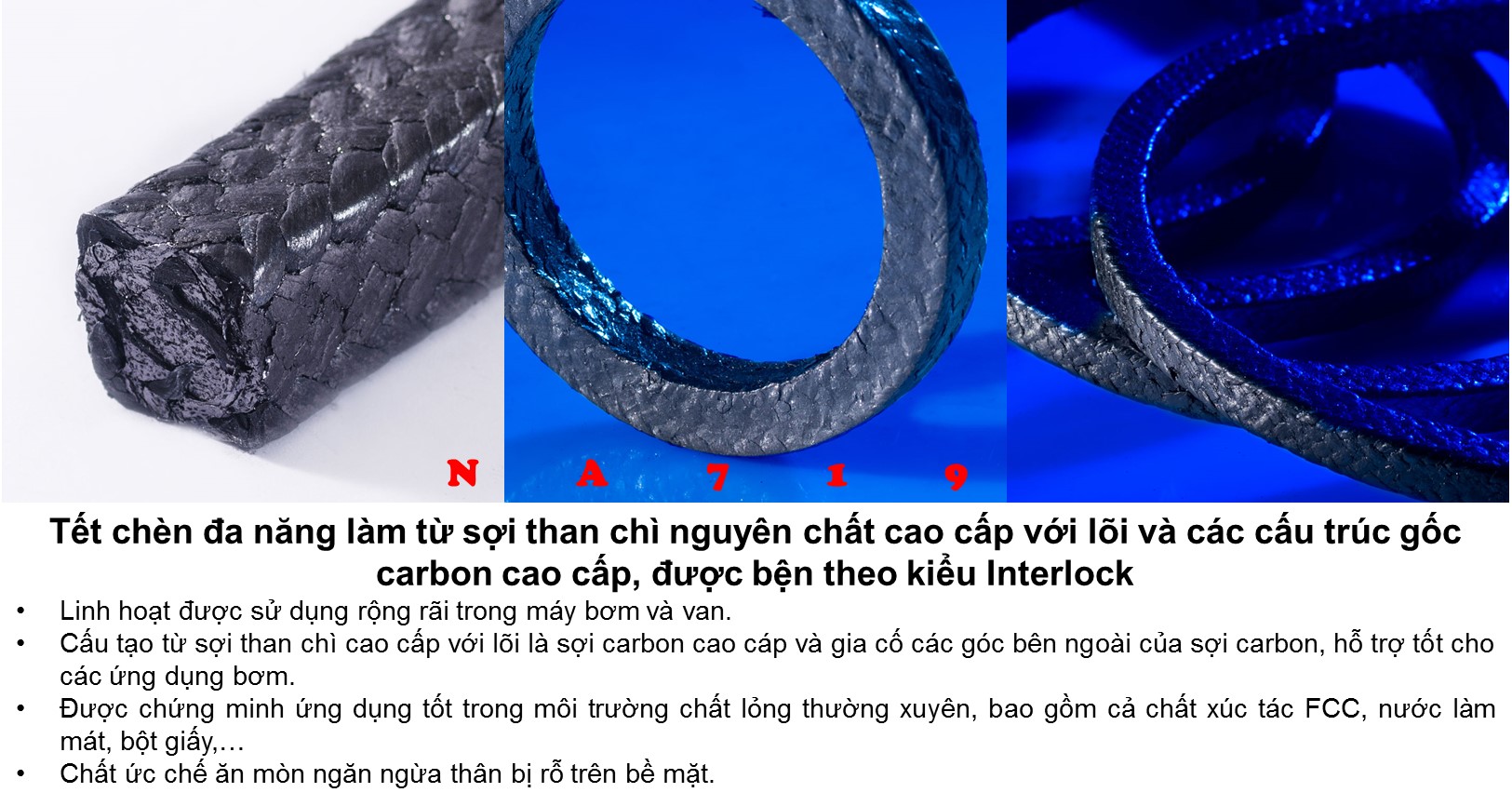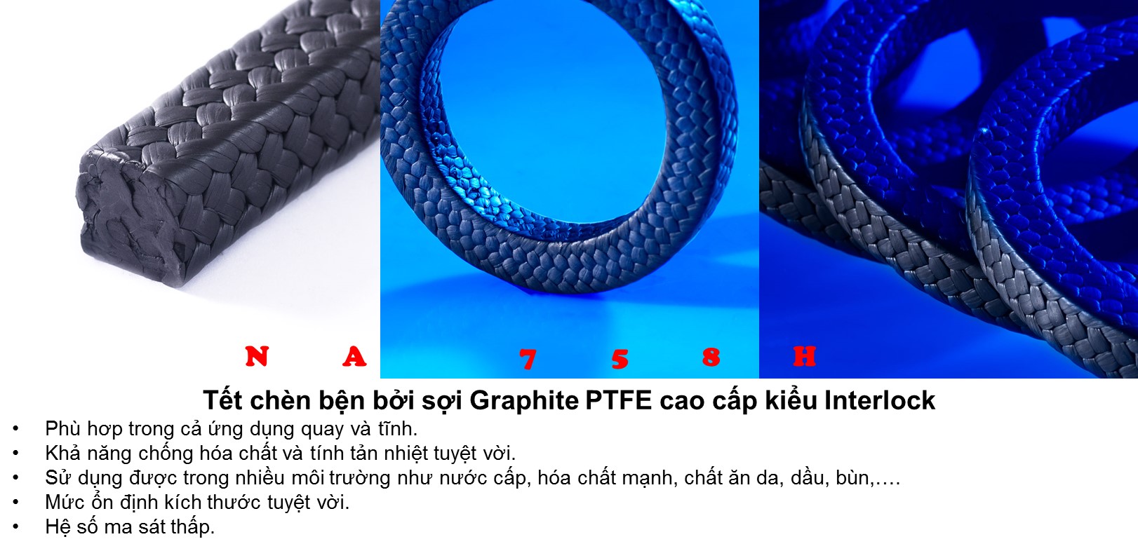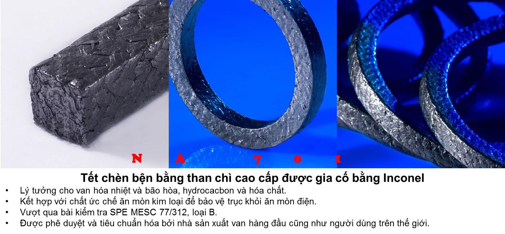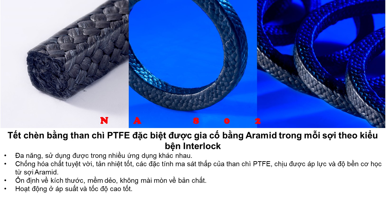 Dây tết chèn được sản xuất bởi J.D.Jones theo tiêu chuẩn các quy định REACH và RoHs, luôn đáp ứng điều kiện để làm việc trong những môi trường khắc nghiệt nhất như ngành nhiệt điện.Thích hợp với nhiều ứng dụng như:
