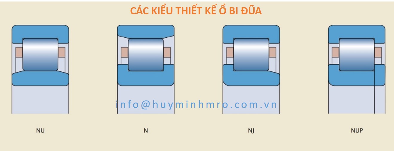 Thiết kế kiểu NUP có hai gờ chặn tích hợp trên vòng ngoài, một gờ chặn tích hợp trên vòng trong và một gờ chặn rời, tức là một vòng chặn rời, trên vòng trong. Các ổ đũa này thường được dùng để định vị trục theo phương dọc trục ở cả hai phía.