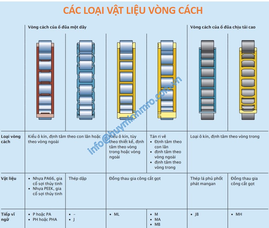 Ổ đũa một dãy và ổ đũa chịu tải trọng cao được lắp các loại vòng cách khác nhau tùy theo thiết kế, dãy, kích cỡ và nhu cầu sử dụng. Các chất bôi trơn thường được sử dụng để bôi trơn cho ổ lăn không ảnh hưởng đến tính chất của vòng cách. Tuy nhiên, một số dầu tổng hợp, mỡ có dầu gốc tổng hợp và các chất bôi trơn có hàm lượng phụ gia EP cao, khi sử dụng ở nhiệt độ cao có thể gây ra các tác dụng ảnh hưởng đến tính chất của loại vòng cách polyamide.